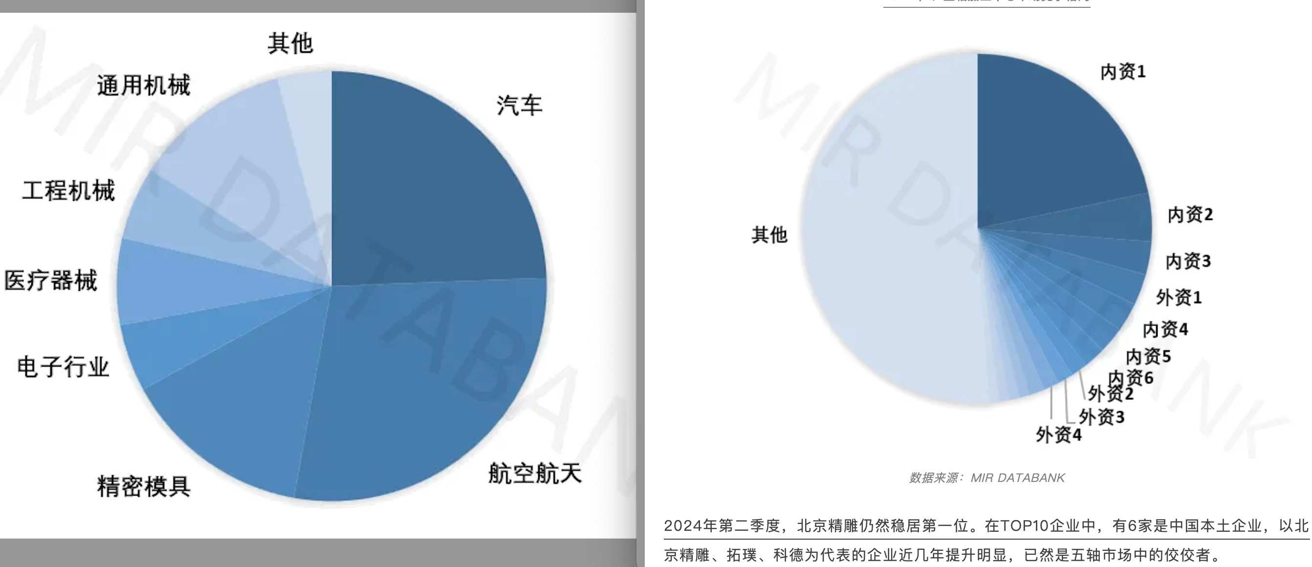 In both cases, you can see the increasing demand from aerospace sector. For Carbon Fiber, 11.4% of domestic demand is now from aerospace sector. For 5-axis CNC machine, Aerospace now looks to have the most demand (even more than the auto industry). Aside from that, the local market has also been taken over by domestic companies likes Beijing Jingdiao Tech and Kede. 5 out of top 6 players are domestic.