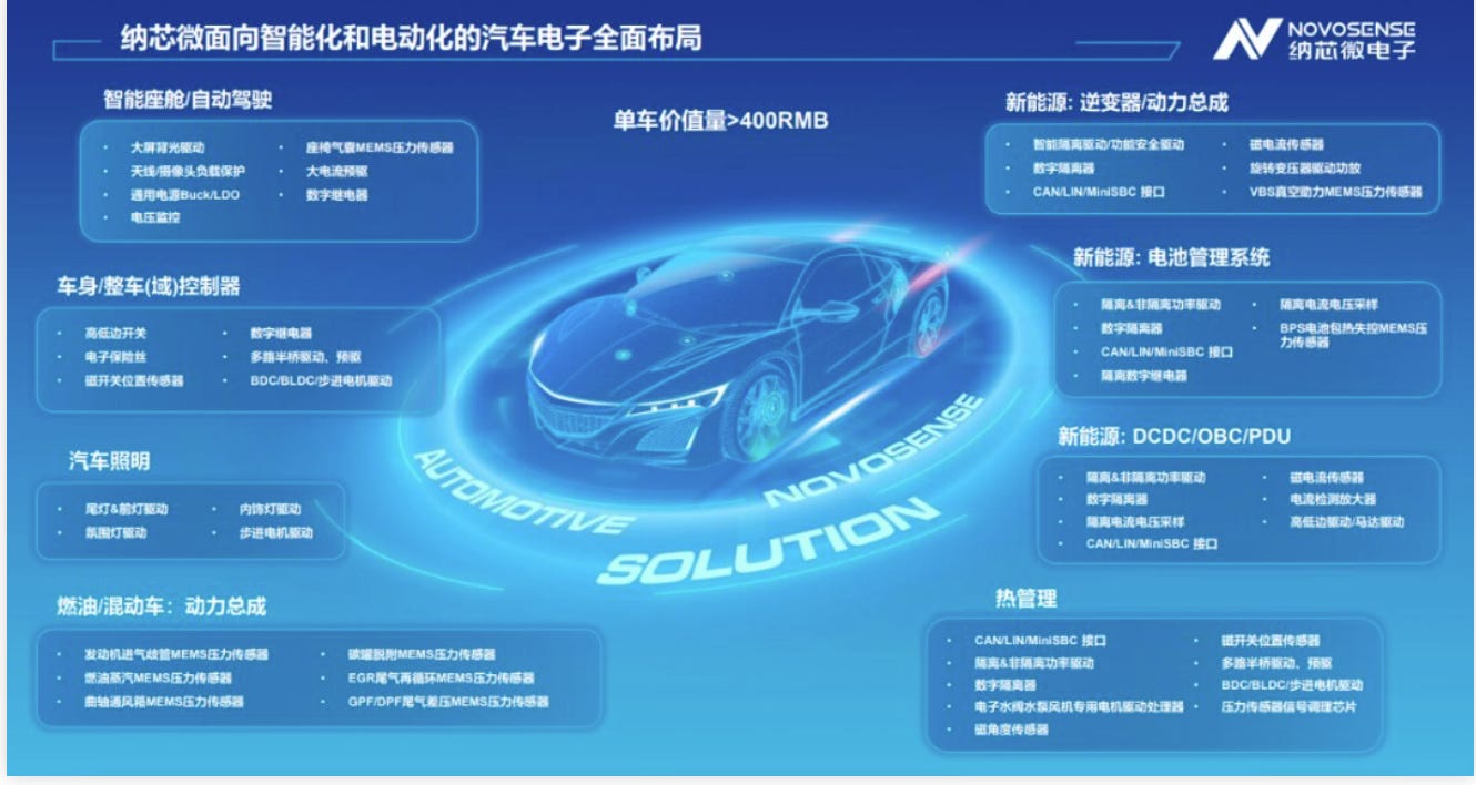 Beyond that, there are increasingly capable domestic chipmakers producing whole suite of products that are auto grade and certified as TUV ASIL-B/D compliant. One example is Novosense, which anticipates it covers chip product worth 400 RMB per EV, but will increase to 2000 RMB before 2025